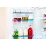 Die Kühl-/Gefrierkombination Bosch KIN86ADD0 ist mit einem Gesamtnutzinhalt von 254 Litern ideal für den mittelgroßen Haushalt geeignet. Der Kühlraum umfasst 184 Liter und stellt dfrei Abstellflächen aus Sicherheitsglas, davon zwei höhenverstellbar, eine VitaFresh plus Schublade sowie drei Türfächer, davon ein Butter-/Käsefach, zur Verfügung. Eco Airflow sorgt für eine optimale Luftzirkulation und konstante Temperatur im Kühlbereich. Der Gefrierbereich bietet einen Nutzinhalt von 76 Litern und ist mit drei transparenten Gefriergutschubladen, davon eine BigBox für größeres Gefriergut, ausgestattet. NoFrost schützt vor Eisbildung sodass man den Gefrierraum nie wieder Abtauen muss. Darüber hinaus überzeugt die KIN86ADD0 mit FreshSense für ein optimales Aufbewahrungsklima dank intelligenter Sensortechnik sowie den Funktionen SuperKühlen und SuperGefrieren und einer Urlaubsschaltung. Mit einem Stromverbrauch von 186 kWh im Jahr ist die KIN86ADD0 in die Energieeffizienzklasse D eingestuft.Art.-Nr.: 100021325
