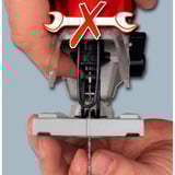 | Bedienung | Werkzeugloser Sägeblattwechsel, Aluminium-Sägeschuh werkzeuglos verstellbar, Hubzahl-Regelelektronik | ||